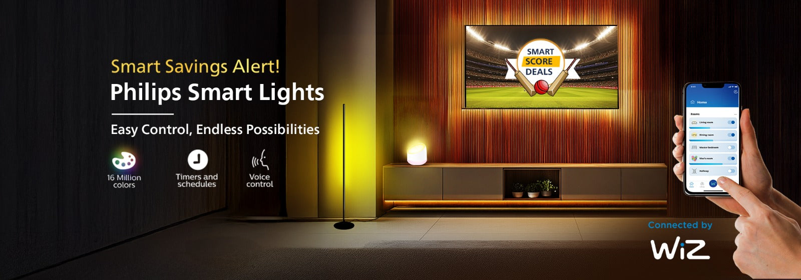 Bring stadium vibes at home with Philips Smart Lights. Shop smart battens, floor lamps, table lamps and much more at exclusive discounts! Perfect for match nights and modern living.