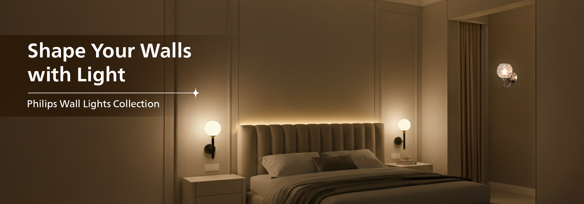 Sometimes, the simplest and most elegant choices can make the most significant impact, Wall lights are one such choice, they give ambient, accent and task lighting while making your space super aesthetic. Philips offers a wide range of indoor wall lights as well as outdoor wall lights to suit your style with great functionality.