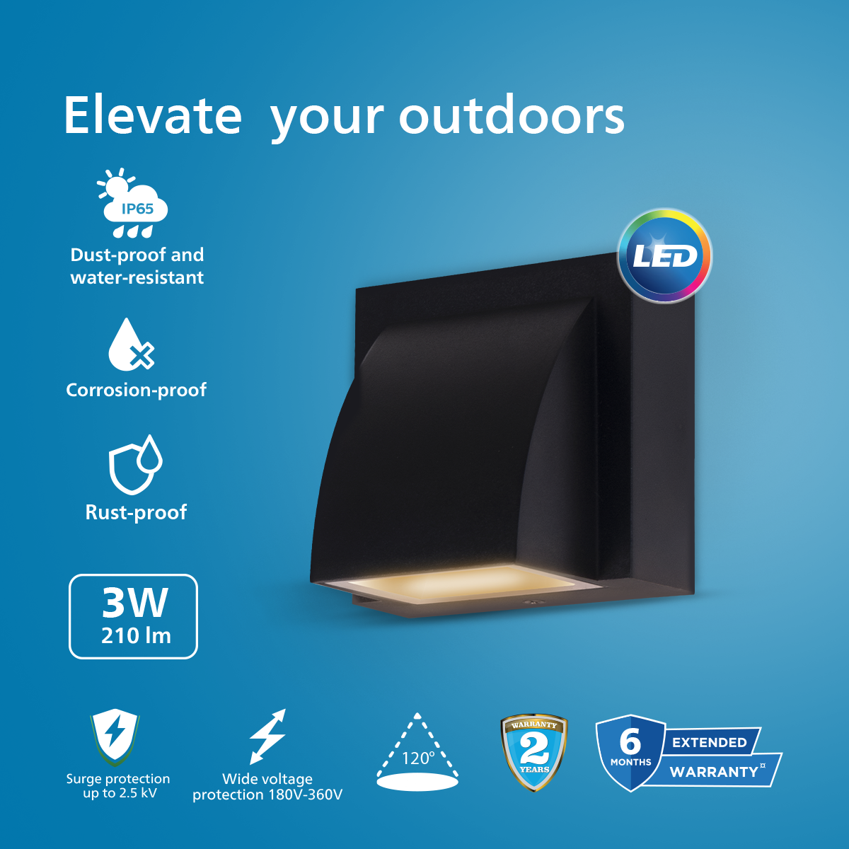 | IP Rating: IP65 | Suitable for outdoor and wet areas |