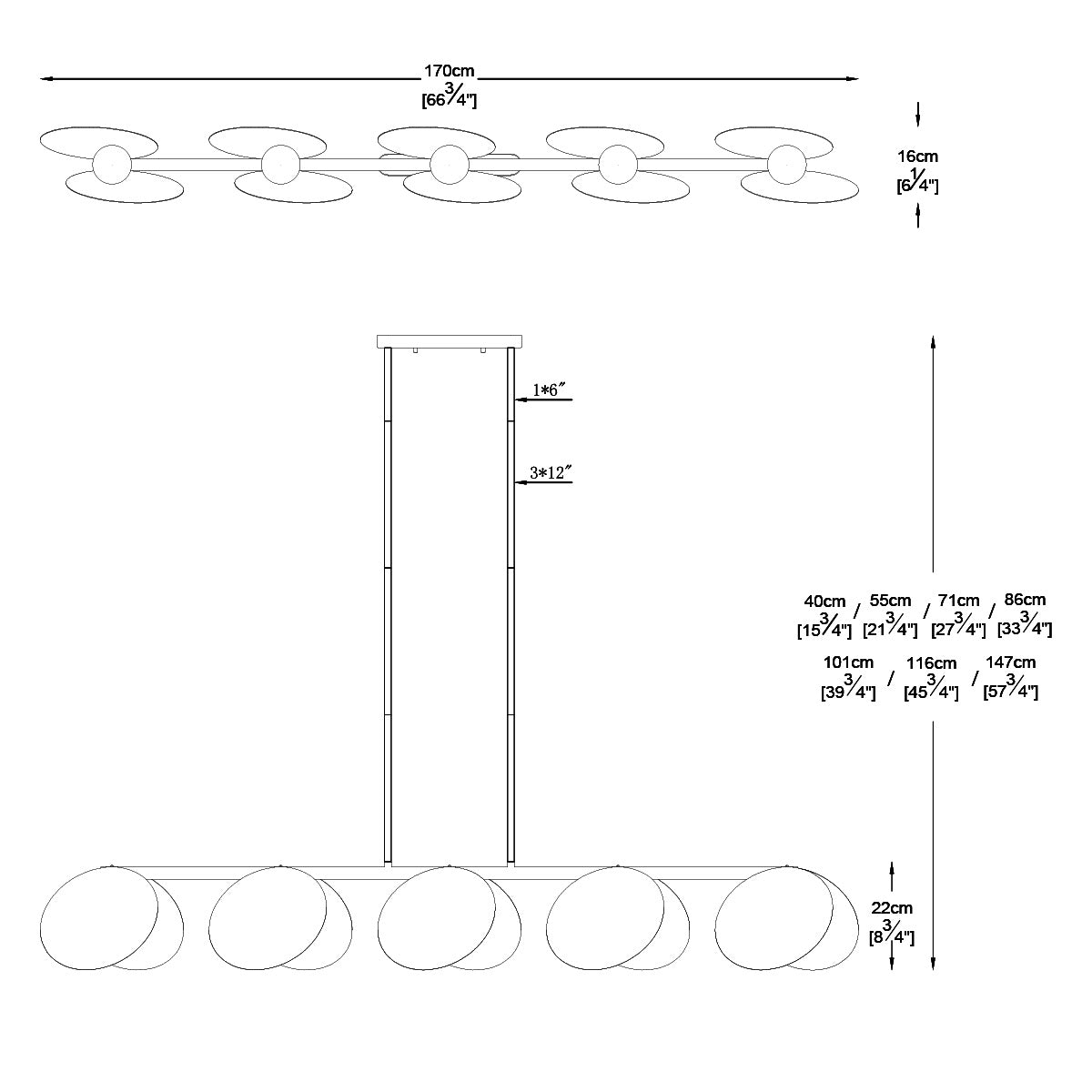 | Dimension | 3H:1000 mm x 160 mm x Adjustable height (400–1320 mm) | 5H: 1700 mm x 160 mm x Adjustable height (400–1320 mm) |
